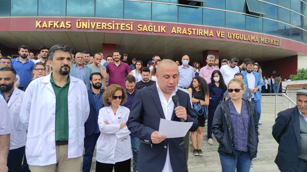 Hastane önünde Hekim-Sen adına açıklama yapan Dr. Öğretim Üyesi İnanç Artaç, şunları söyledi: