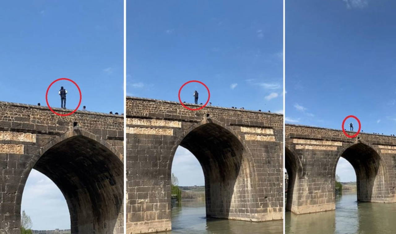Olay, Sur ilçesinde bulunan tarihi On Gözlü Köprü üzerinde meydana geldi. Hafta sonu yoğunluğunun yaşandığı yerlerden biri olan tarihi On Gözlü Köprüsünde davul zurna çalınması üzerine bir kişi köprünün kemerine çıktı.