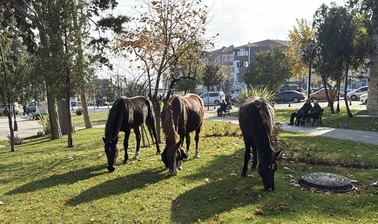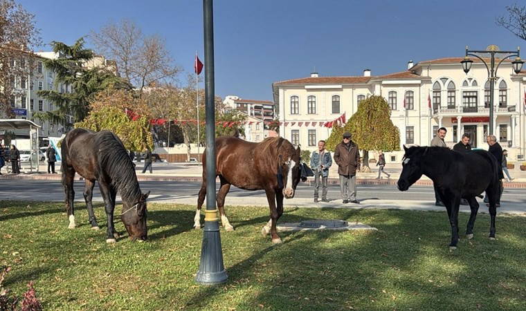Önceki gün kent merkezine inen 3 at, Atatürk Meydanı çevresini mesken tuttu.