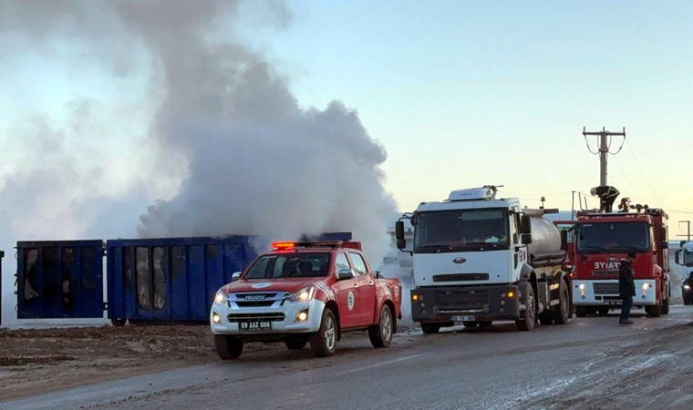 Bu sırada tesis çalışanları işletmedeki vinçle konteynerleri boş alana taşıdı.