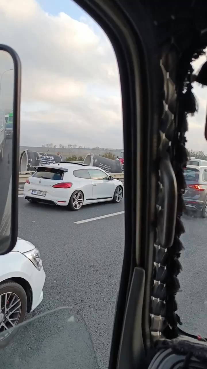 Kamyonet sürücüsüne yardım etmek isteyen 34 SE 9566 plakalı otomobil sürücüsü ise kamyonetin arkasında durdu. Beton yüklü olduğu öğrenilen 34 EN 1775 plakalı TIR'ın şoförü ise, emniyet şeridinde duran kamyonet ve otomobili son anda fark ederek manevra yaptı.