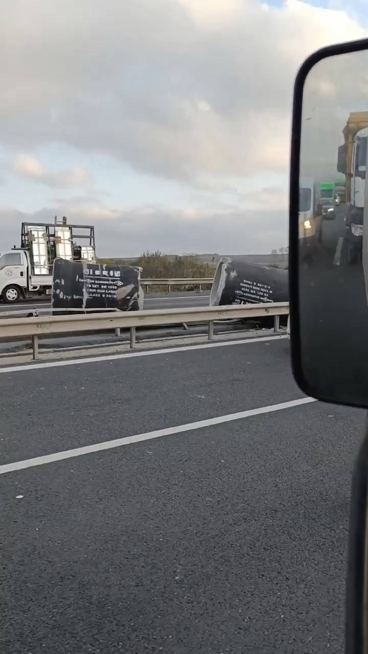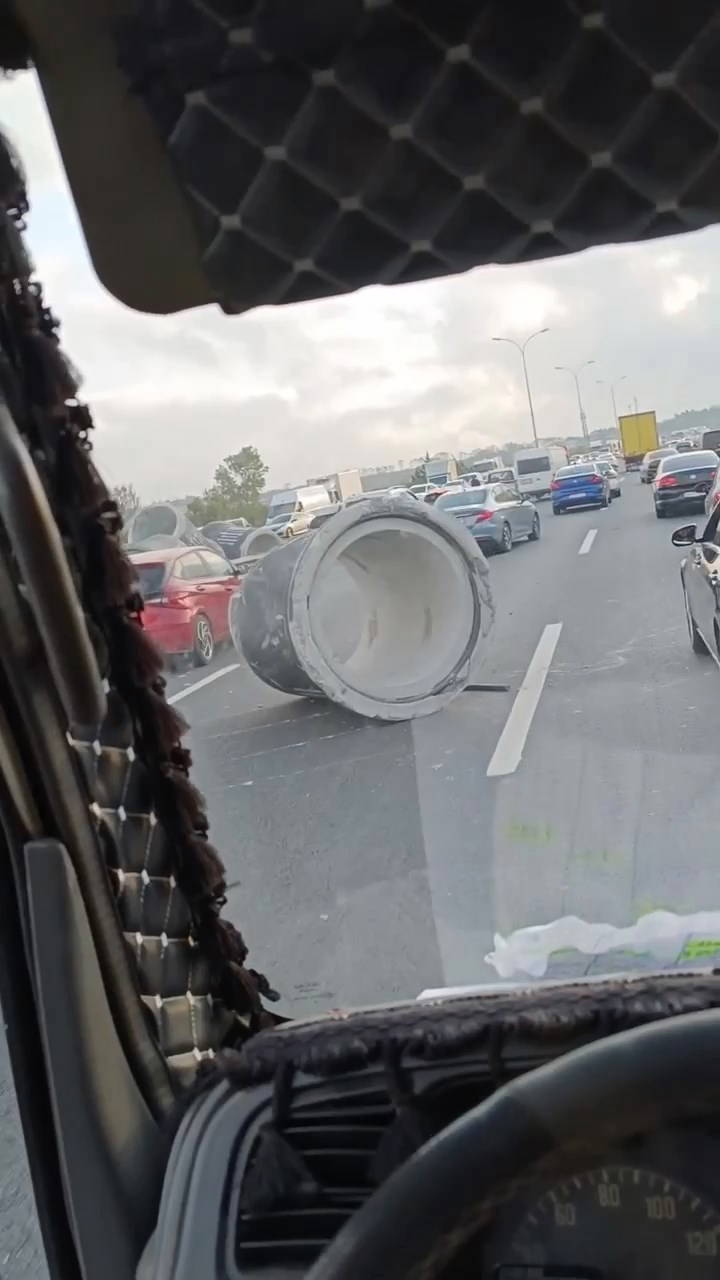 Polis ekipleri ise kaza nedeniyle kapanan yolu tek şerit halinde trafiğe açarken, otoyolda araç yoğunluğu yaşandı. Otoyola savrulan beton borular olay yerine çağırılan çekiciyle TIR’a yeniden yüklendi.