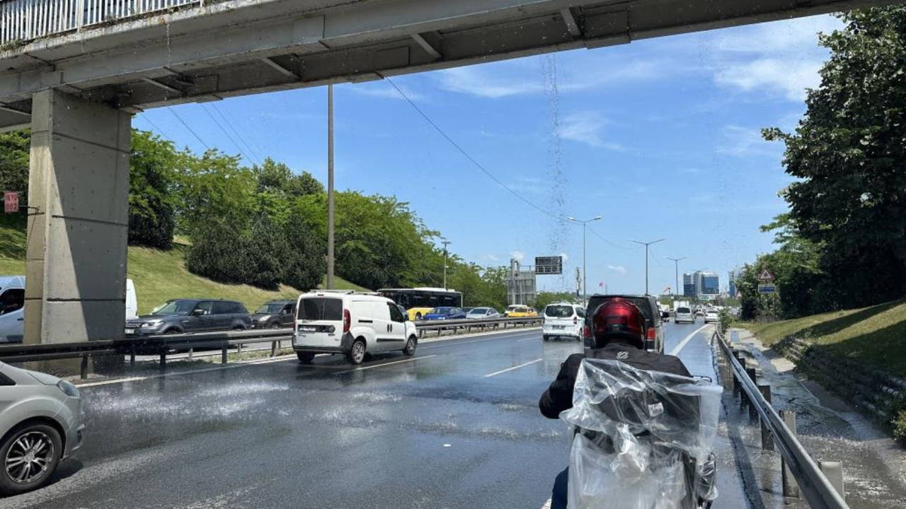 Üstgeçitten adeta yağmur gibi akan sular nedeniyle sürücüler önce şaşırdı. Bazı sürücüler de yavaşlayarak araçlarını yıkadı. Yolda seyreden motosiklet sürücüleri ise köprünün altından geçmek istemedi. Bazı motosikletliler de gözünü karartıp köprünün altından geçip yoluna devam etti. Yaşanan ilginç anlar kameralara yansırken, su akışının durdurulması için olay yerine ekip sevk edildi.