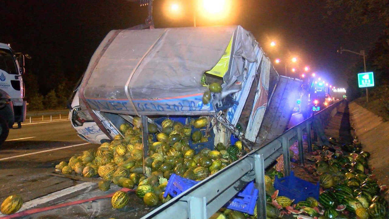 Kaza, saat 02.00 sıralarında TEM Otoyolu Kavacık mevkii Ankara istikametinde meydana geldi. Karpuz ve kavun yüklü 34 DNS 719 plakalı kamyonete aynı istikamette ilerleyen 34 TJE 47 plakalı taksi çarptı. Çarpmanın etkisiyle kamyonet devrilirken kazada taksi sürücüsü ve kamyonetteki üç kişi hafif şekilde yaralandı. Kamyonetteki karpuz ve kavunlar yola saçılırken kaza nedeniyle yolda trafik oluştu.