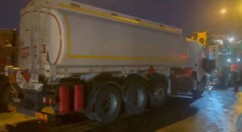 İstanbul'da Esenyurt TEM Otoyolu Hadımköy gişeler mevkiinde, yakıt tankeri kamyona arkadan çarptı.