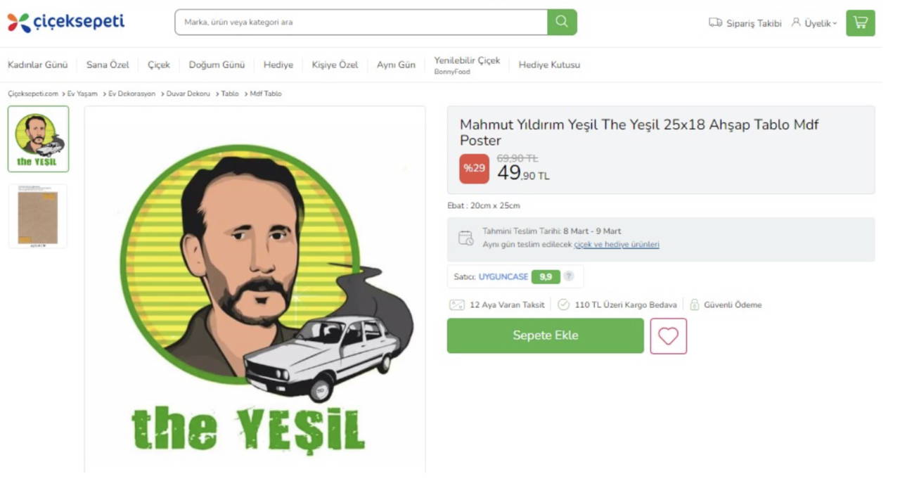 Online çiçek ve hediyelik eşya satışı yapan Çiçek Sepeti'nin internet sitesinde 1990'lı yıllarda faili meçhul cinayetlerle özdeşleşen 'Beyaz Toros' ve JİTEM elamanı olan 'Yeşil' kod adlı Mahmut Yıldırım'ın görselinin olduğu hediyelik ürün satıldığı ortaya çıktı.