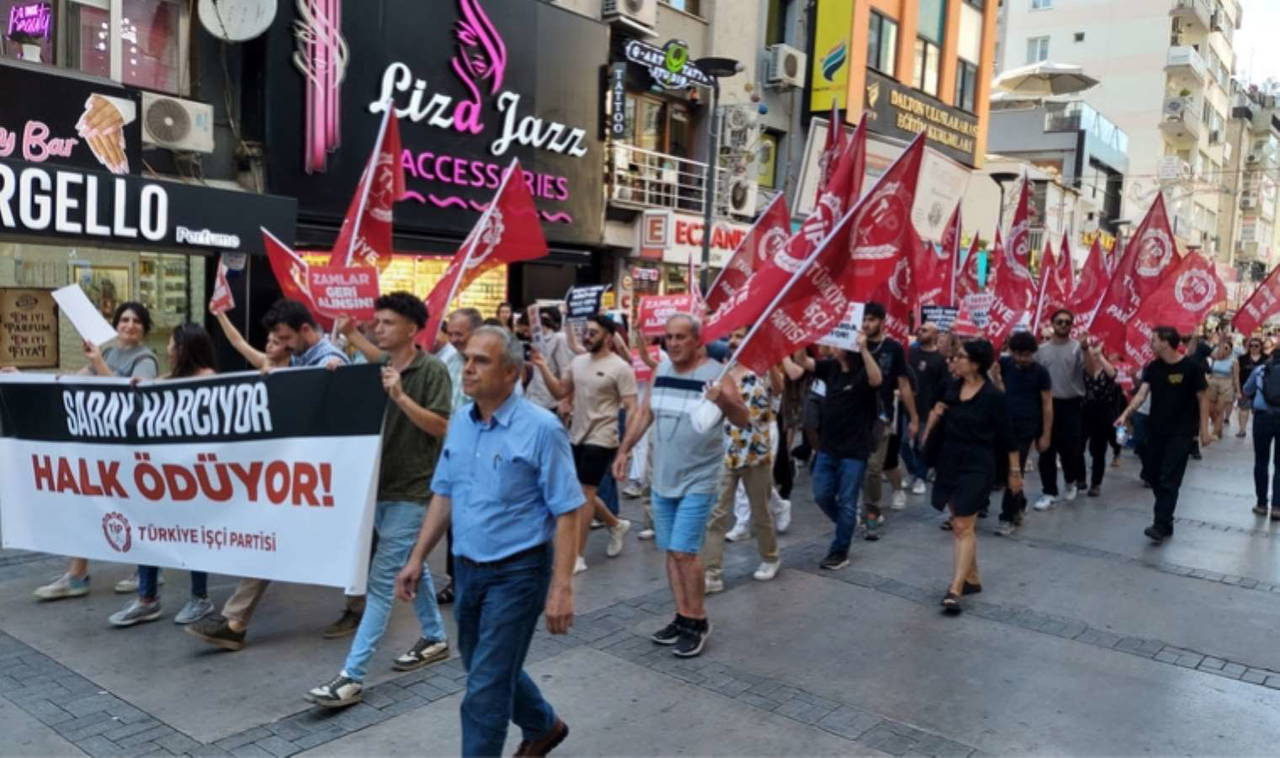 Türkiye İşçi Partisi gelen zamları protesto etmek için bugün ülke genelinde sokağa çıktı. İzmir'de de il örgütü önünde toplanan partililer "Saray harcıyor, halk ödüyor" yazılı pankart ile Kıbrıs Şehitleri Caddesi boyunca yürüdü. Sık sık "AKP elini cebimizden çek", "Gün gelecek devran dönecek, AKP halka hesap verecek", "Zamlar, vergiler geri çekilsin", Saray harcıyor emekçiler ödüyor", "Zam zulüm işkence işte AKP", "Patronlar çalıyor emekçiler ödüyor", "Yoksullaşan milyonlar zenginleşen patronlar", "AKP’nin gözü emekçinin cebinde" sloganları atılırken yürüyüş Türkan Saylan Kültür Merkezi önünde yapılan basın açıklamasıyla son buldu.