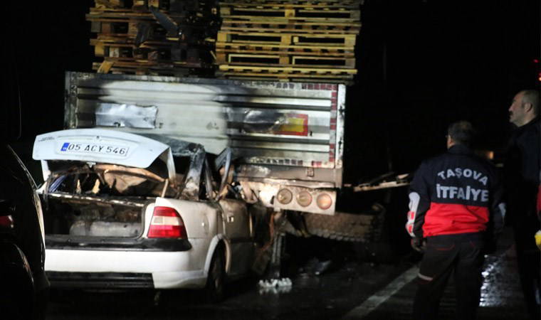 Edinilen bilgiye göre, Taşova’dan Amasya istikametine seyir halinde olan Olcay Çöl yönetimindeki 05 ACY 546 plakalı otomobil, Süleyman Yalçıngil idaresindeki 09 AIE 526 plakalı palet yüklü tırın dorsesine arkadan çarptı.