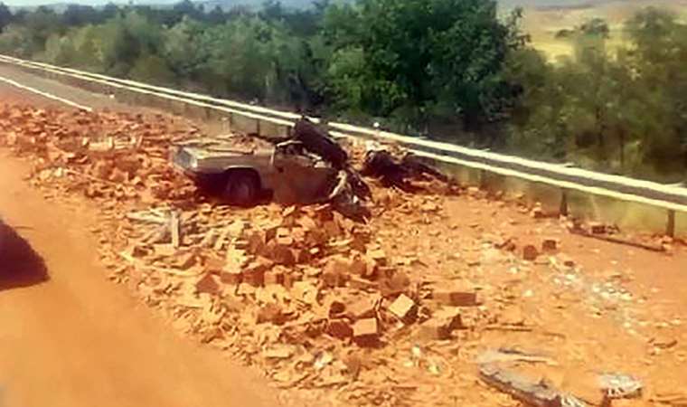 Otomobil, tuğla yığınının altında kalırken, sürücü Vedat Akyıldız ile beraberindeki İsmail Yılmaz (21) yaralandı. Yaralılar, olay yerine gelen sağlık görevlilerinin ilk müdahalesinin ardından hastaneye kaldırıldı.