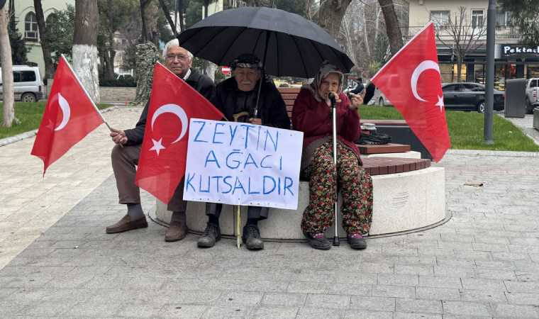 Tire Cumhuriyet Meydanı'nda basın açıklaması yapan mahalle sakinleri "Zeytin ağaçları Kur'an'da kutsaldır, kutsal katliama hayır" yazılı pankart açarak, yetkililere seslendi.