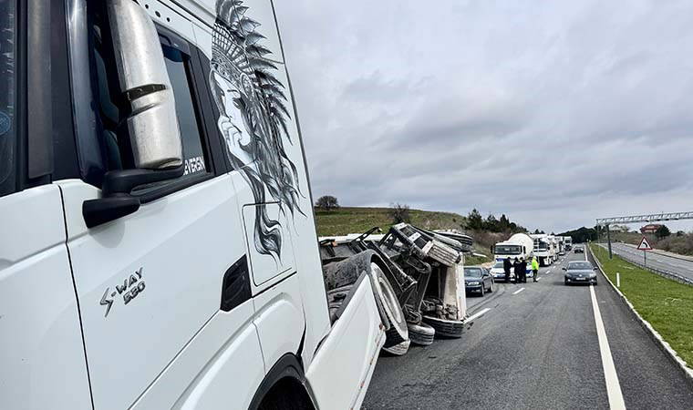 Dorse Gelibolu girişindeki Plaka Tanıma Sistemi’ne çarptı. Çarpmanın etkisiyle parçalanan sistem yol kenarına dağılırken, TIR’ın dorsesi de devrildi.