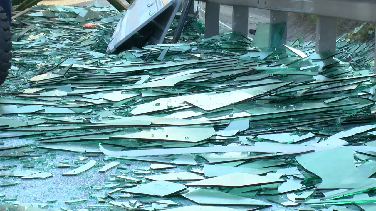 Yol bakım ekiplerinin temizleme çalışmaları sonucunda camlar süpürülerek yolun kenarına alındı.