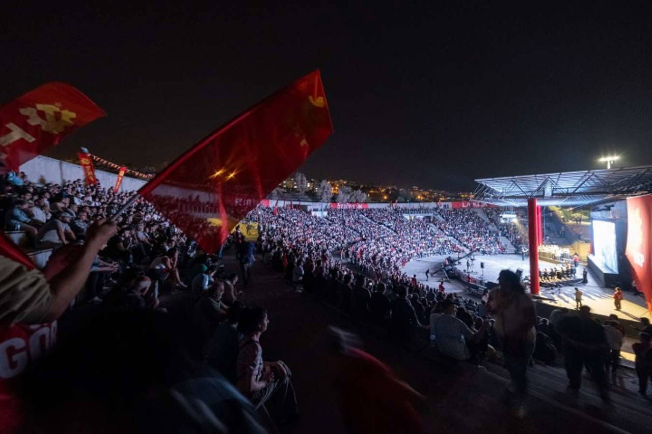 Sık sık “Fabrikalar, tarlalar, siyasi iktidar her şey emeğin olacak”, “İşçiler partiye, parti iktidara” sloganları atılırken, İsrail’in Filistinlilere yönelik saldırıları da unutulmadı. Etkinlik boyunca yurttaşlar Türk bayrağı ile Filistin bayrağı salladı.