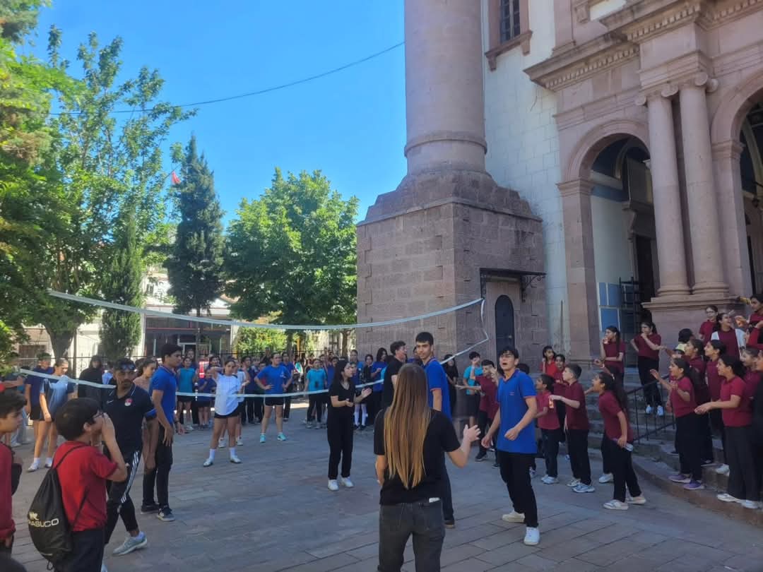 . Balıkesir’in Ayvalık ilçesindeki Çınarlı Camisi’nin avlusunda ortaokul öğrencileri için voleybol turnuvası yapıldı.