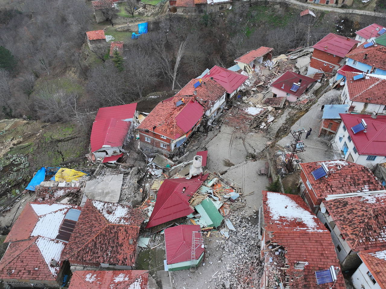 Heyelanlar sonrası, 39 ev ve köyün camisi boşaltıldı. Bu evlerden 4’ü ile boşaltılan cami cumartesi günü yıkıldı.