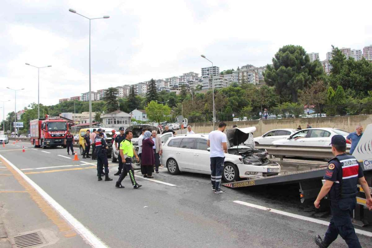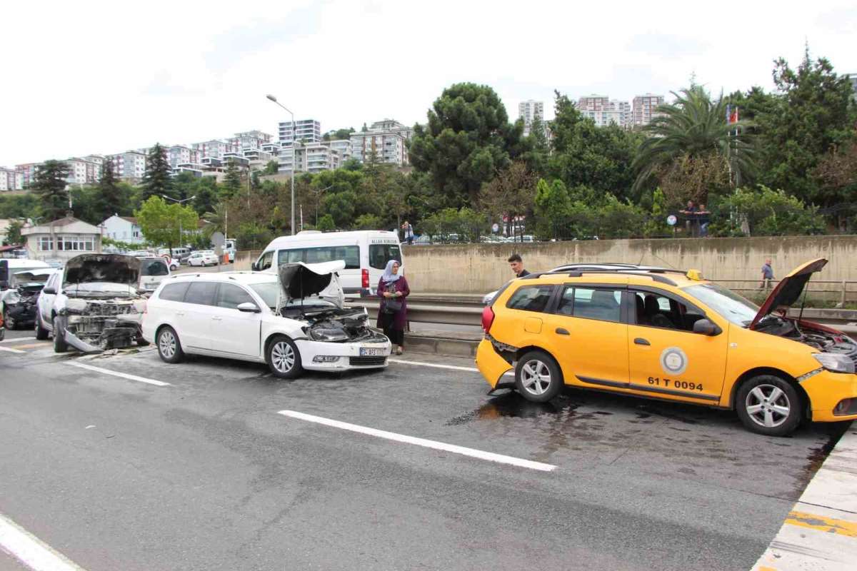 Bu sırada aynı istikamette ilerleyen toplam 6 araç kontrollerini sağlamayarak peş peşe birbirine vurdu.