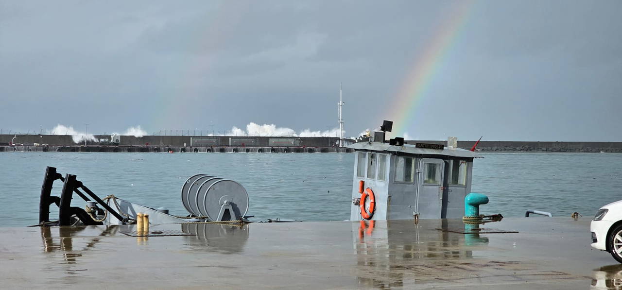 Bölgede 2 gündür etkili olan fırtına nedeniyle denizde oluşan dev dalgalar, rıhtımı aşıp, askerlerin konakladığı konteynere ulaştı.
