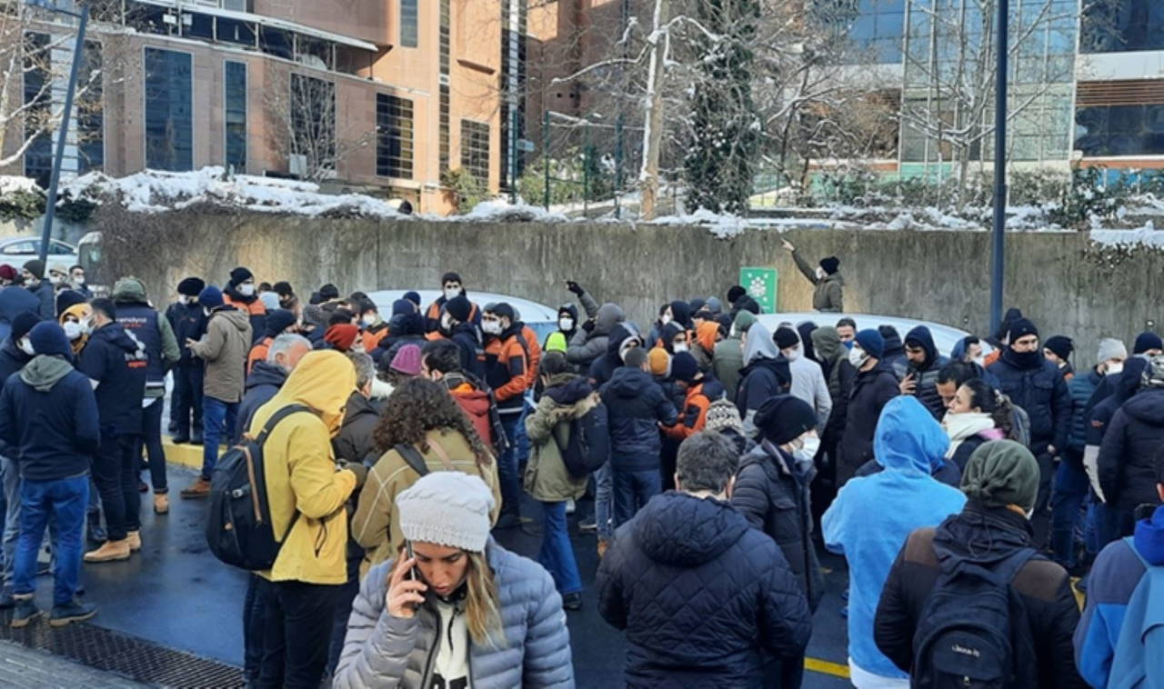 2022 yılı için yapılan yüzde 11 zam dayatmasını kabul etmeyen işçiler, insanca yaşam koşullarını karşılayabilecek maaş ve hızlı teslimat baskısının son bulması talebiyle şirketin Maslak'taki merkez ofisinin önünde toplandı.
