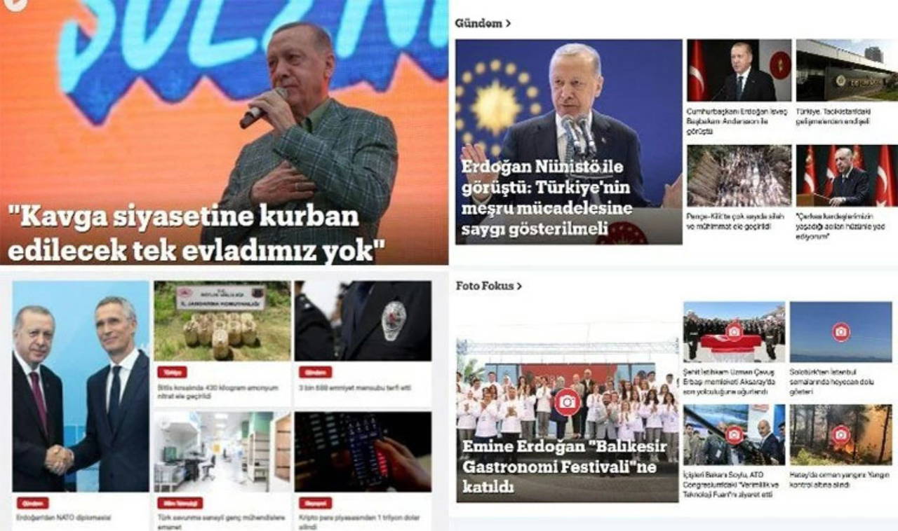 Siteye girenler, AKP'li Cumhurbaşkanı Recep Tayyip Erdoğan'ın birden fazla haberlerinin dolu olduğu bir sayfa ile karşılaştı.