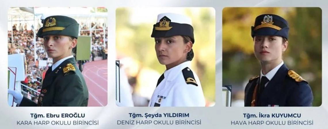 Ankara'da Kara Harp Okulu'nda, Teğmen Ebru Eroğlu, İstanbul'da Deniz Harp Okulu'nda Teğmen Şeyda Yıldırım ve Hava Harp Okulu'nda Teğmen İkra Kuyumcu dönemlerini birinci bitirdi. Birinci kızlar, diplomalarını AKP'li Cumhurbaşkanı Recep Tayyip Erdoğan'dan aldı.