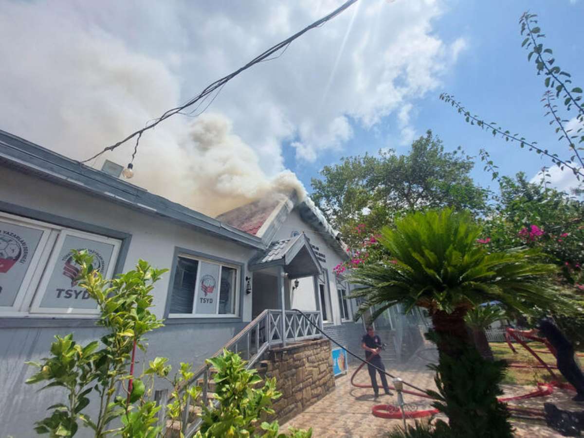 Kısa sürede büyüyen alevler, derneği sardı. Dernekten yükselen dumanlar da gökyüzünü kapladı.