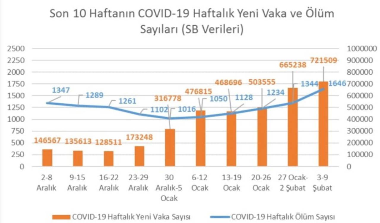 Sağlık Bakanlığı verilerine göre haftalık yeni vaka ve ölüm sayıları geçen aya göre %50'den fazla arttı.