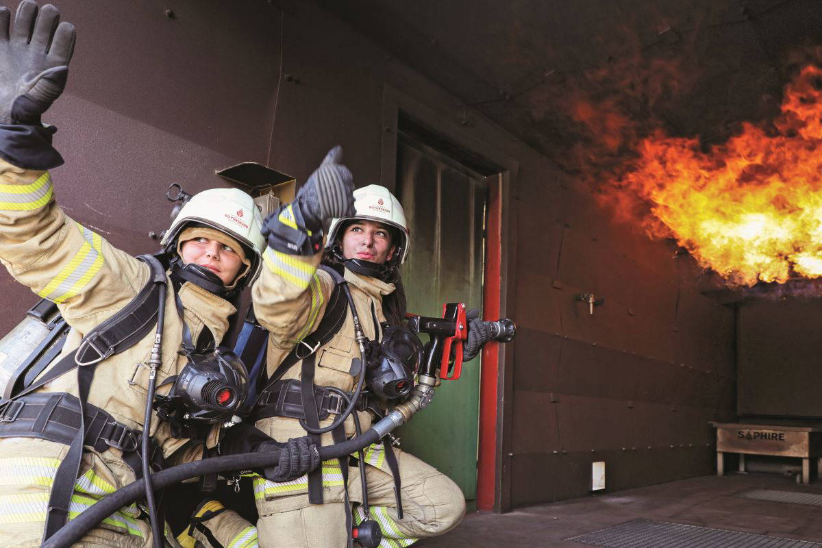 Birçoğunun yangınla ilk tanışması 630 derece sıcaklığa ulaşan bir konteynerin içindeydi. Bu onların yangın söndürme tatbikatlarının bir parçasıydı.