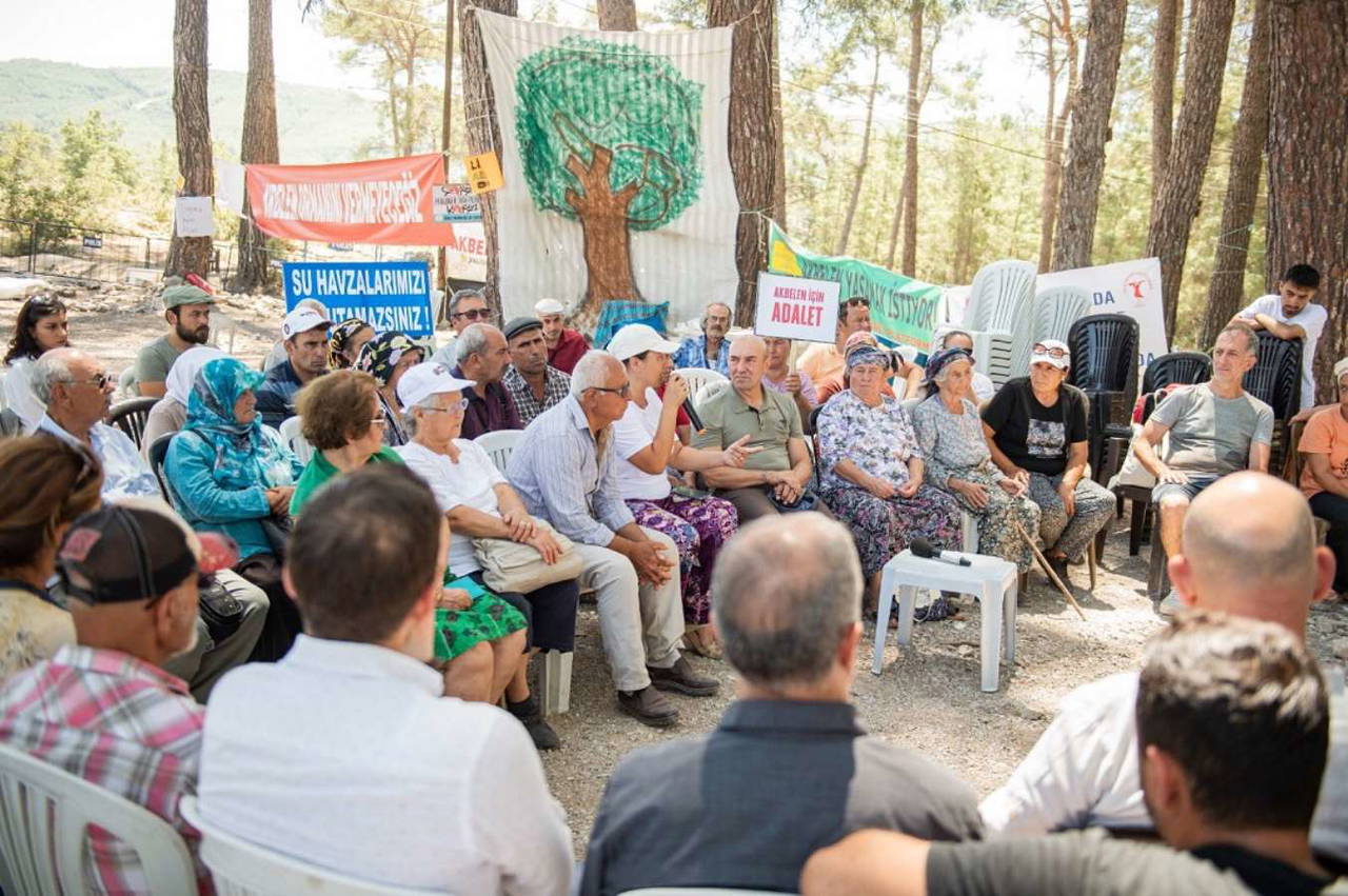 İzmir Büyükşehir Belediye Başkanı Tunç Soyer, Muğla’nın Milas ilçesindeki Akbelen Ormanı’nda açılmak istenen maden sahasına ve ağaç katliamına karşı oluşturulan direnişe katıldı. İlk günden beri direnişe destek veren Başkan Tunç Soyer, İkizköy girişinde kurulan direniş noktasında köylülerle buluştu. Jandarma kontrolünün ardından direniş noktasındaki ormanlık alana gelen Başkan Soyer, bölgede yapılan doğa katliamı hakkında bilgi aldı. Direniş alanında mücadeleye verdiği desteği yineleyen Başkan Soyer, “Burada toprağına, doğasına, ağaçlarına aşık insanlar bu mücadeleyi sürdürüyorlar. Çok zor, çok üzücü. Katliam gözümüzün önünde devam ediyor. Hakikaten dayanmak da zor, seyretmek de zor. Şunu bilmek lazım; haklıyız, haklısınız. Biz orman yangını olduğunda niye üzülürüz? Şimdi yangından beterini kendi kendimize yapıyoruz. Yangından ne farkı var? Geçen sene burada yangın çıktı diye tüm Türkiye üzülmedi mi?” ifadelerini kullandı.