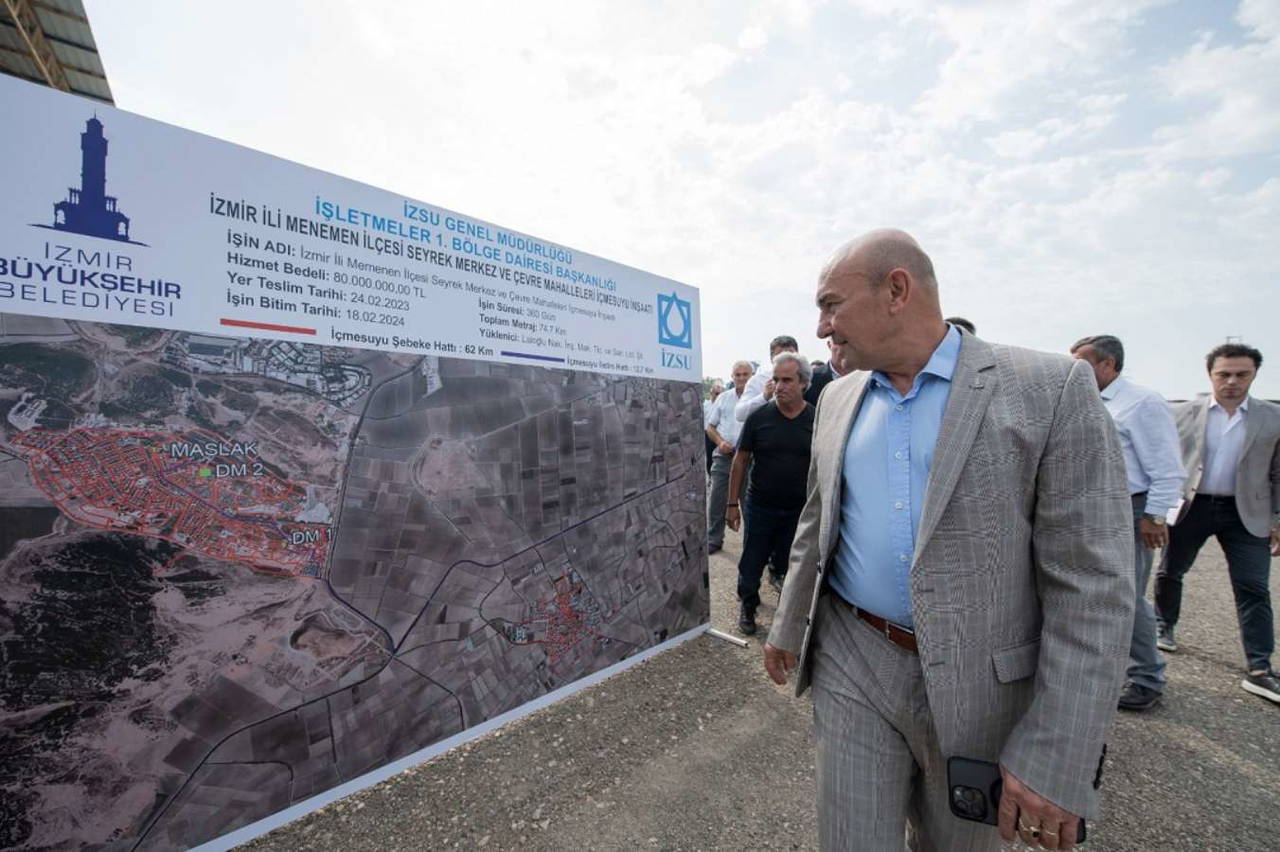 Hiçbir İzmirlinin canını sokakta bulmadıklarını belirten Soyer, “Anlatması zor olsa da, görülse de görülmese de, toprağı kazıp İzmir’in temellerini, altyapısını güçlendiriyoruz. Kanal dediğiniz toprağın altında görünmüyor. Metro dediğiniz toprağın altında görünmüyor. Bu sene içerisinde Narlıdere metroyu da Çiğli tramvayını da bitireceğiz. Çünkü bizim tek amacımız, çocuklarımıza ve torunlarımıza güvenli bir İzmir bırakmak. İzmir’e yaptığımız altyapı hizmetlerinden payını elbette Menemen ilçemiz de aldı ve almaya devam edecek. Menemen, hızla artan nüfusu nedeniyle en büyük altyapı yatırımları yaptığımız yerler arasına girdi. Öncelikli hedeflerimizden biri İzmir’in her mahallesine, her hanesine kesintisiz ve sağlıklı içme suyu hizmeti sağlamak. Bugün burada temelini attığımız hizmetle bu hedefe bir adım daha yaklaşmanın sevincini yaşıyoruz” dedi.