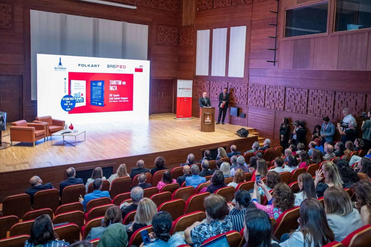 Dr. Serdar Şahinkaya da BASİFED’in 2 Şubat 1923’te Gazi Mustafa Kemal Atatürk önderliğinde toplanan Kadınlar Kongresi’ni hatırlayarak tam yüz yıl sonra 2 Şubat 2023’te Kadınlar Kongresi’ni yeniden topladıklarını belirtti. Şahinkaya, büyük bir emek sonucu ortaya çıkan bu kitap ile de 100 yıl sonra düzenlenen Kongre’yi tarihe not düşmüş olduklarını kaydetti.