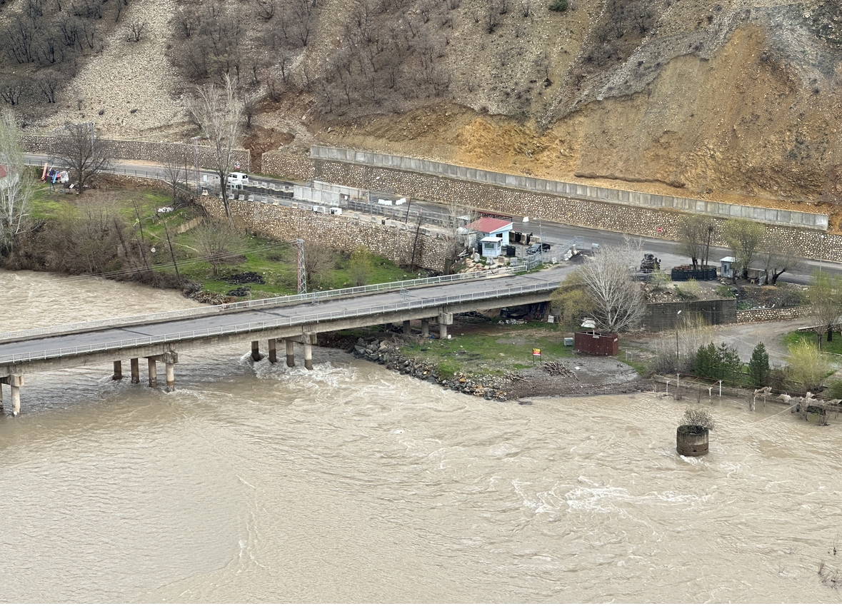 Tunceli'de sağanakla birlikte debisi yükselen Munzur çayı, 2 gün önce 3 ayrı noktadan taştı.