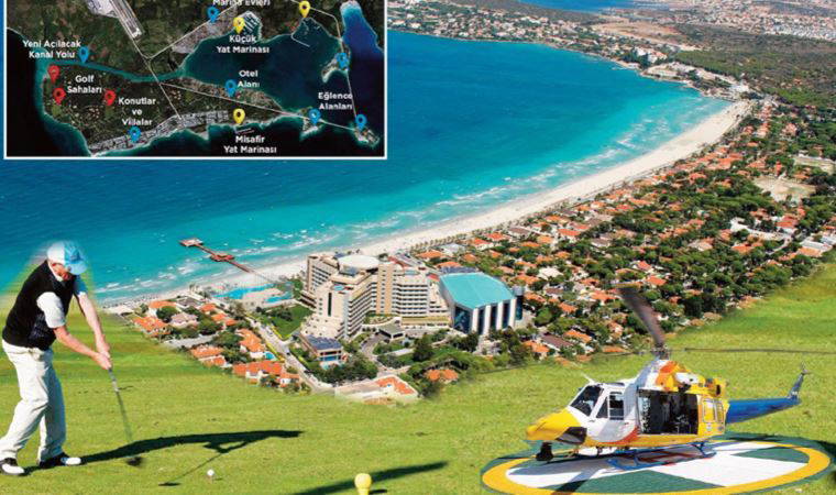 Çeşme ilçesinde yaşayan köylülere ait olan ve Cumhurbaşkanı kararnamesiyle acele kamulaştırılan 555 farklı büyüklükteki araziler üzerinde Kültür ve Turizm Bakanlığı tarafından yapılacak olan Çeşme Turizm Projesi’nin ayrıntıları ortaya çıktı. Yarımada’nın üçte birine denk gelen projede 200’e yakın otel yapılacak Sörf okulları, 13 golf sahası, dört marina ve 160 kortluk tenis alanları ile lojmanlar, kongre merkezi, temapark, film platosu, motorsport pisti olacak.
