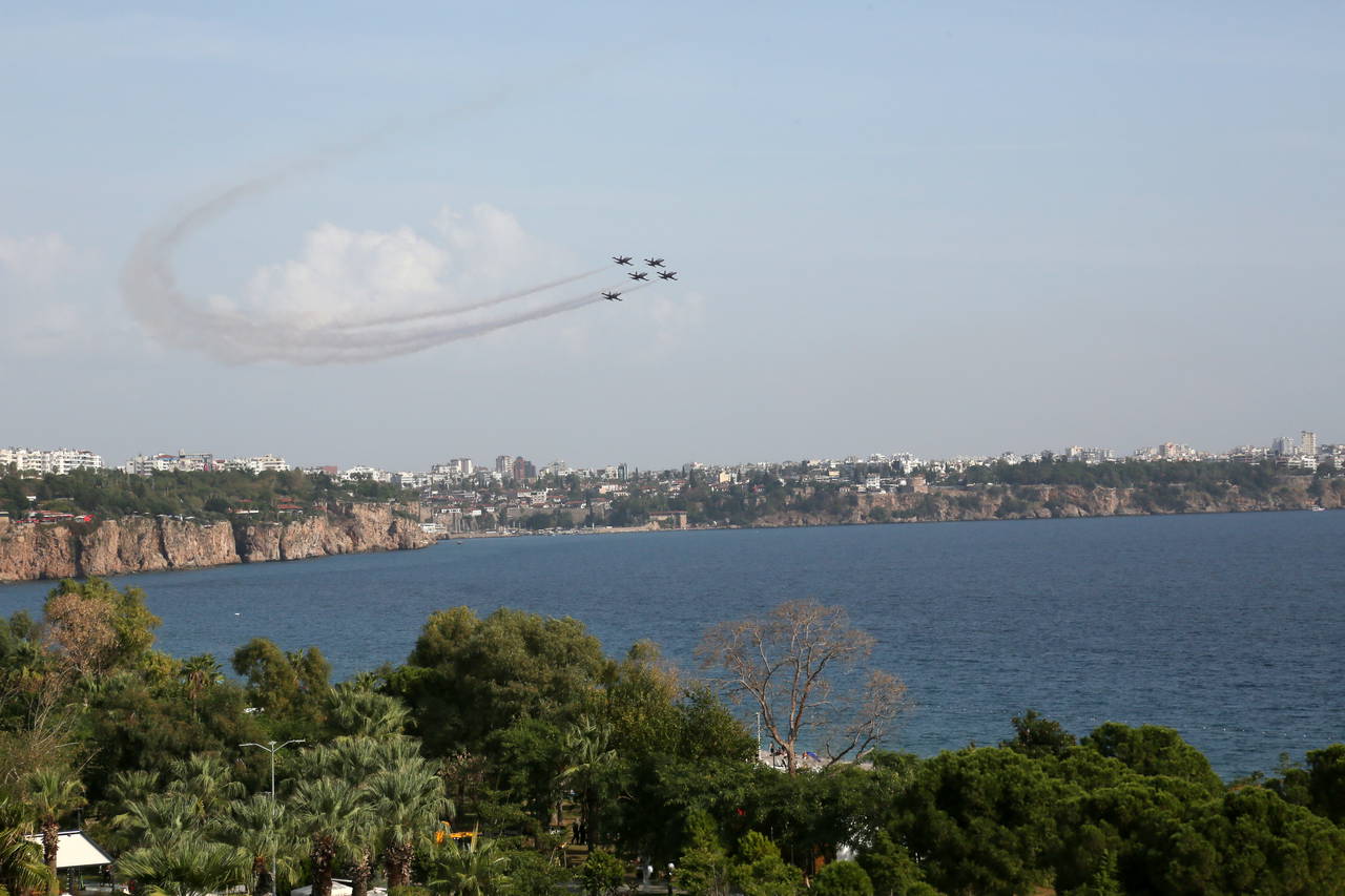 Türkiye Cumhuriyeti'nin kurucusu Gazi Mustafa Kemal Atatürk, 85'inci ölüm yıl dönümünde farklı etkinliklerle anılıyor. Türk Hava Kuvvetleri'ne bağlı akrobasi timi Türk Yıldızları da Konyaaltı Sahili'nde 'Ata'ya Saygı' uçuşu yaptı.