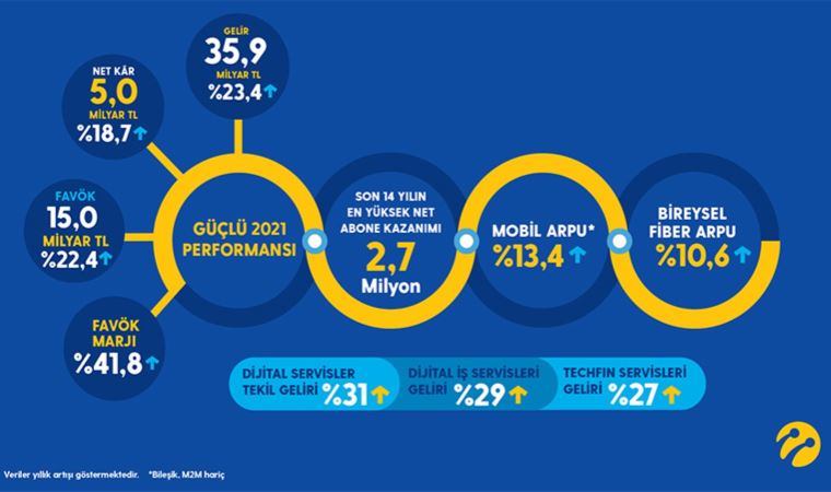 “2022 yılı için yaklaşık %30 gelir büyümesi ve yaklaşık 19 milyar TL FAVÖK gerçekleştirmeyi hedefliyoruz. “Her yıl 1 milyon yeni müşteri” hedefimizi koruyoruz. Operasyonel yatırım harcamalarımızın gelire oranının ise %20-21 aralığında gerçekleşeceğini öngörüyoruz.”