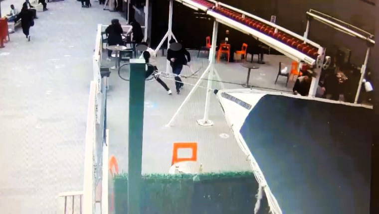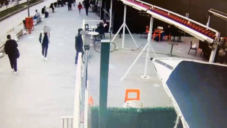 Saldırıyı gerçekleştiren iki şüphelinin, kantinde oturan gruba doğru yaklaştıkları anda gizledikleri silahları çıkartarak defalarca ateş ettikleri, kaçarken de etraftaki kalabalığa aldırmadan ateş etmeye devam ettikleri anlar görüntülerde yer aldı.