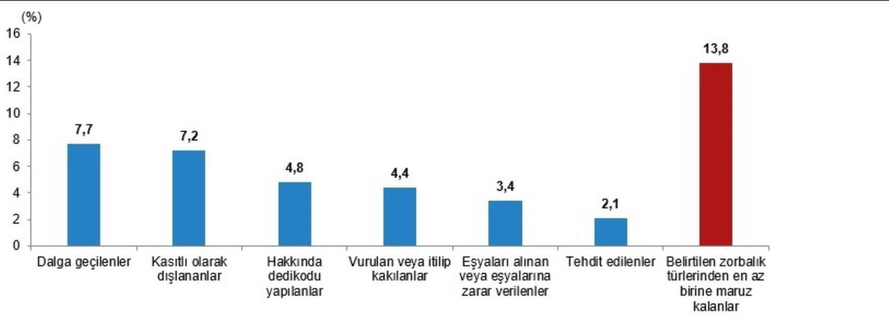 Anneleri/temel bakım verenleri tarafından ayda en az birkaç kez diğer çocuklar tarafından zorbalığa maruz kaldığı belirtilen 6-17 yaş grubundaki çocukların oranı %13,8 oldu.