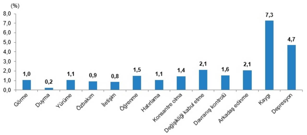 Anneleri/temel bakım verenleri tarafından her gün kaygı yaşadığı belirtilen 5-17 yaş grubundaki çocukların oranı %7,3 iken her gün depresyonda hissettiği belirtilen aynı yaş grubundaki çocukların oranı ise %4,7 oldu.