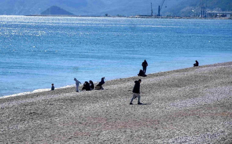 Güneşli havayı fırsat bilenler, soluğu Konyaaltı Sahili'nde aldı. Kimileri kumların üzerine oturup denizi izlerken, kimileri sahil bandında yürüyüş yaptı. Sahile bebeğiyle gelen bir kadın kumların üzerinde çocuğuyla oynarken, rüzgarlı havaya aldırış etmeyen bir kişi de denize girerek yüzdü.