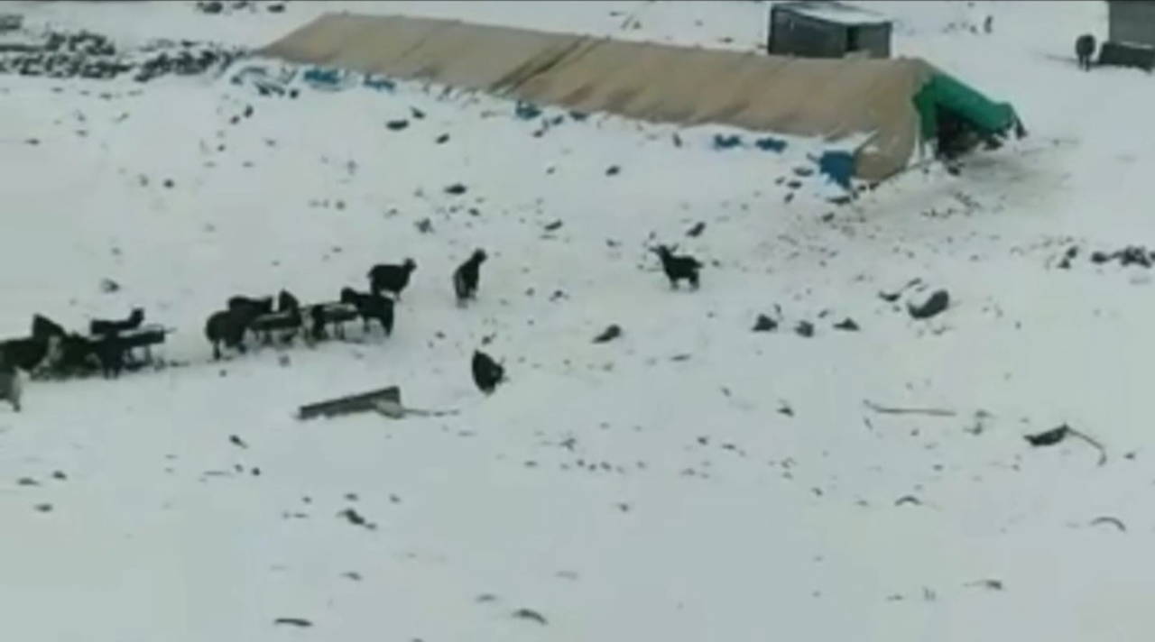 Küçükbaş hayvanlar kar altında ot bulmaya çalışırken, hava sıcaklıklarının düşmesi nedeniyle ağıllara giden su şebekesi de dondu.