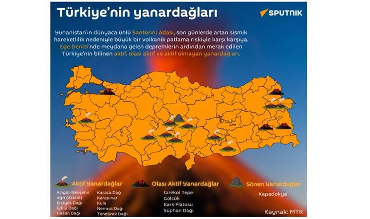 Sputnik'ten Selin Uludağ'ın haberine göre Türkiye, yakın geçmişte aktif olduğu bilinen ve hala faaliyet potansiyeli taşıyan 10 volkanik dağa ev sahipliği yapıyor.