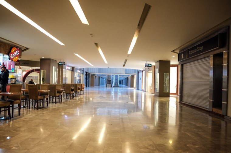 AVM’deki birkaç mağaza dışında bütün mağazaların ve dükkanların kepenklerinin kapalı olduğu dikkat çekti. Yapıdaki ıssızlığı en iyi olarak az sayıda kişinin adımlarının yankılanması anlatıyor.