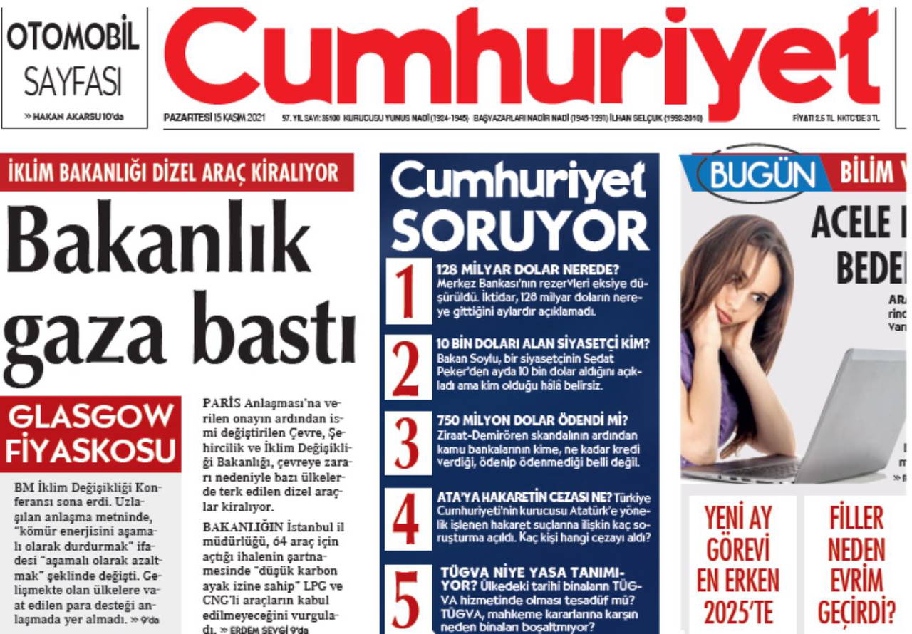 Cumhuriyet, 15 Kasım 2021’de “Bakanlık gaza bastı” başlıklı haberle, İstanbul Çevre, Şehircilik ve İklim Değişikliği İl Müdürlüğü’nün 64 adet dizel araç kiralamak için ihaleye çıktığını duyurmuştu.