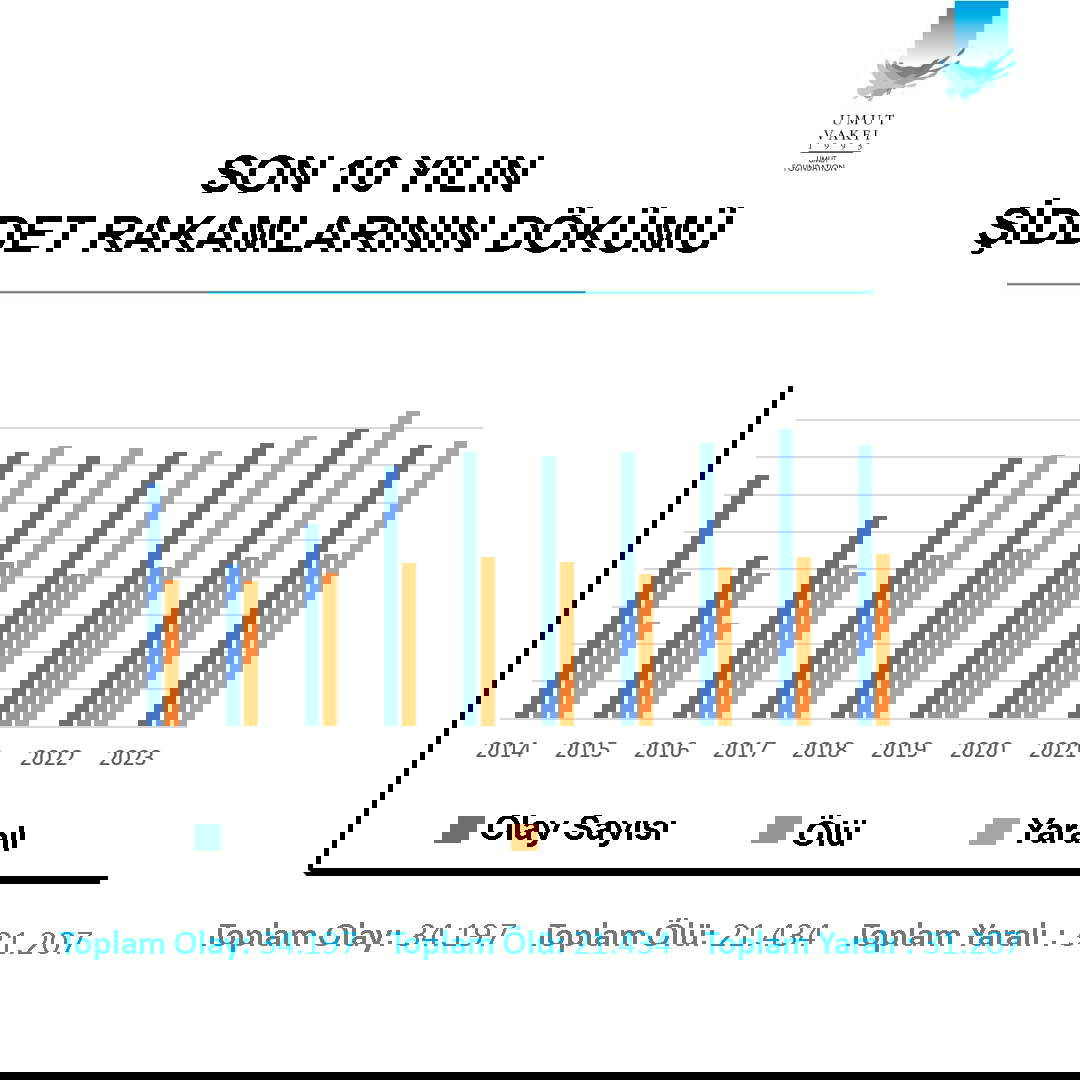 2014 yılından bugüne geçen 10 yılda; toplam 34 bin 197 silahlı şiddet olayı yaşandı. 10 yılda meydana gelen 34 bin 197 silahlı şiddet olayında toplam 21 bin 434 kişi öldü, bazıları ağır 31 bin 207 kişi de yaralandı. 2023 yılında olayların en çok yaşandığı ilk 11 il ise sırasıyla; İstanbul, Samsun, Adana, İzmir, Kocaeli, Sakarya, Bursa, Şanlıurfa, Ankara, Diyarbakır ve Çorum şeklinde oldu.