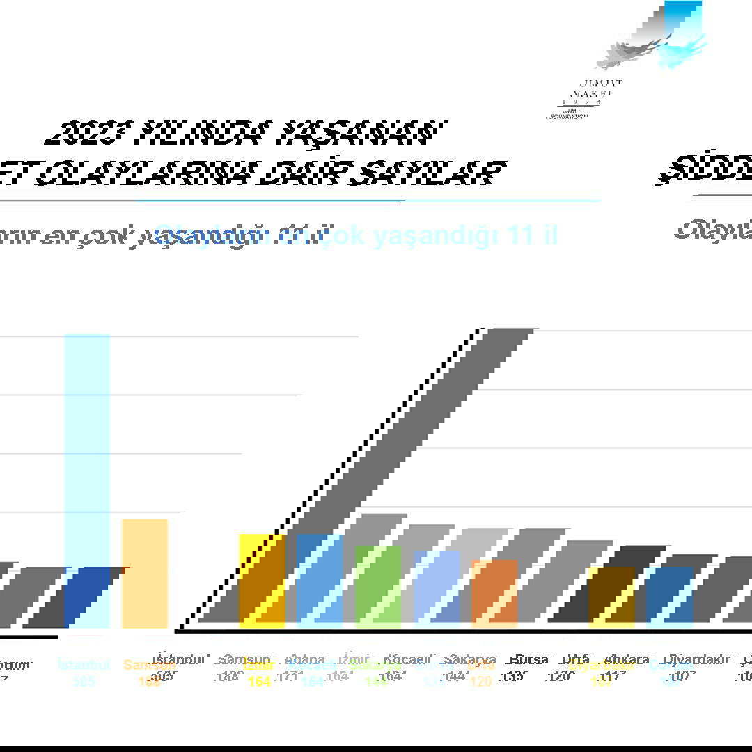 İller bazında bakıldığında ise 2023 yılında en çok şiddet olayının yaşandığı ilk 11 il şöyle: