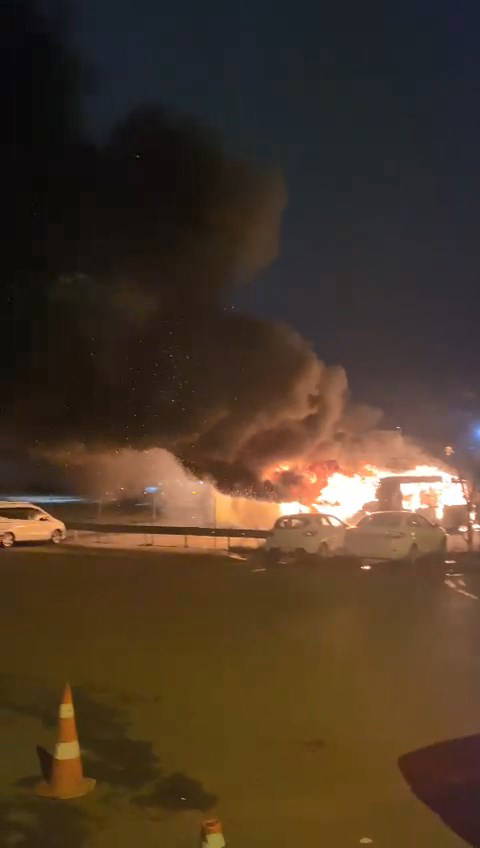OTOBÜSLERİN ALEV ALEV YANDIĞI ANLAR KAMERADA