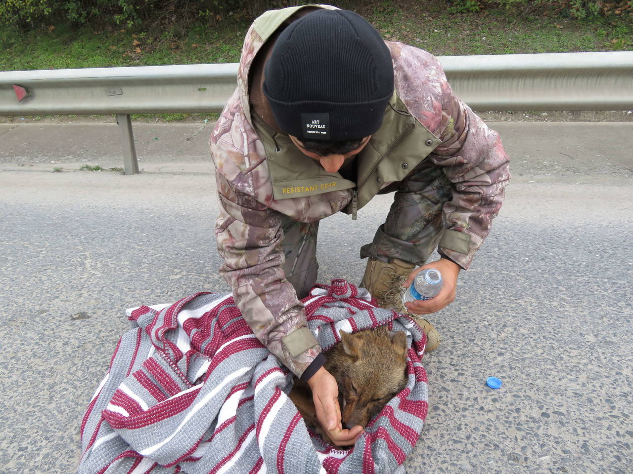 Ekipler, güvenli alana getirilen yaralı hayvanın üzerine battaniye ile örttü. Trafik ekipleri yaralı çakal için Doğa Koruma ve Milli Parklar Genel Müdürlüğü ve belediye ekiplerine haber verdi. Trafikteki bir kurye de yaralı hayvanı görerek yardım etti.