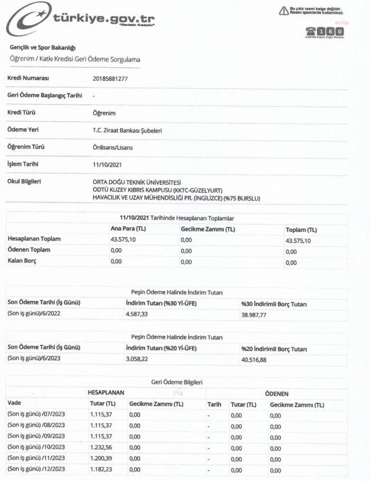 "ODTÜ Kuzey Kıbrıs Kampüsü'nde öğrenciyim. Babam herhangi bir işte çalışmıyor ve annem SGK emeklisi. 5.01.2018'de geri ödemesiz burs hakkı kazandım. Ancak bursumun bitiş tarihinde e-Devlet üzerinden 6.04.2019'da bursumun krediye dönüşmüş olduğunu gördüm.