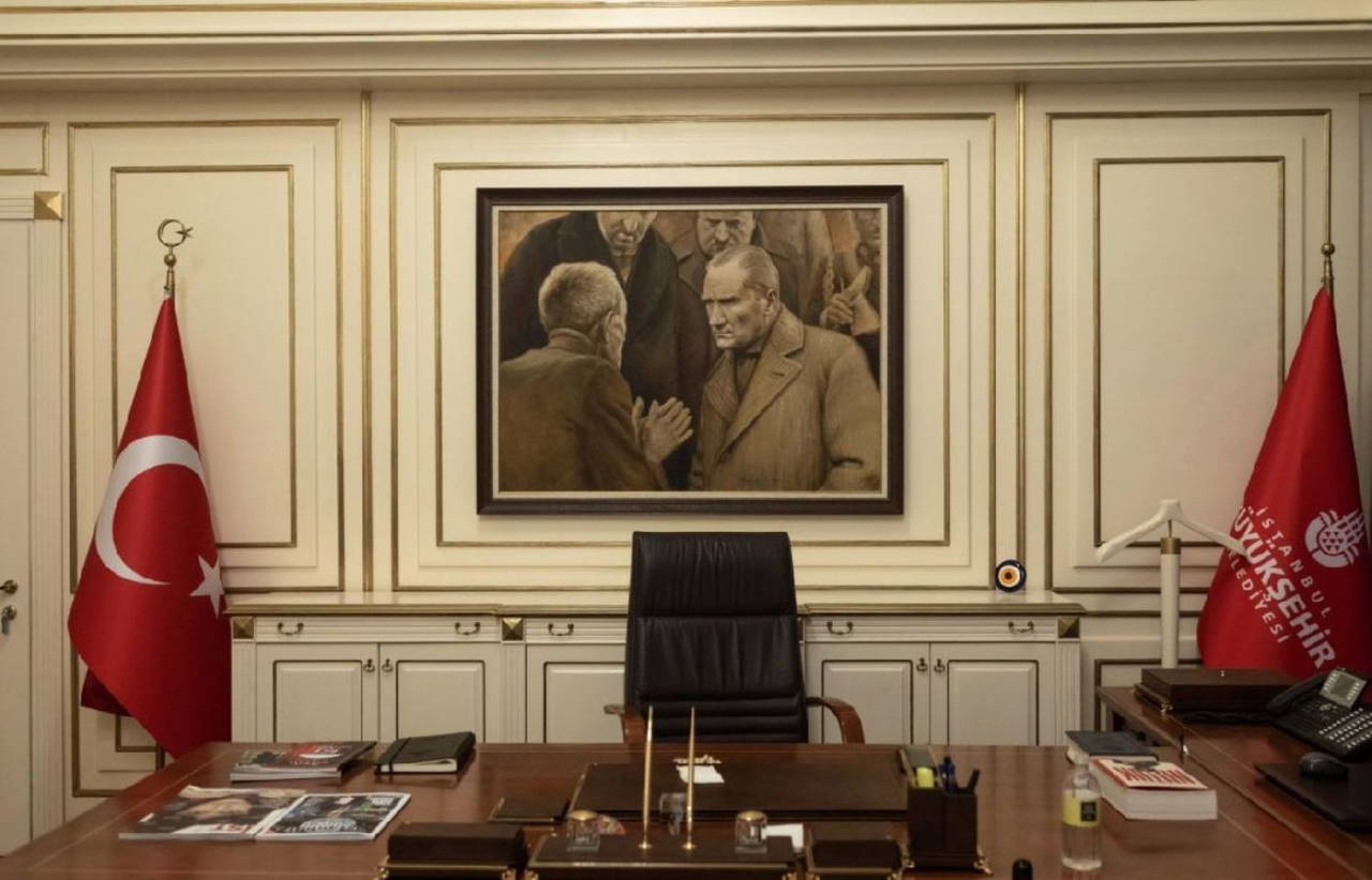 Dergide, İmamoğlu’nun ofisinin detayları da yer alırken, Türk bayrağının yanında Mustafa Kemal Atatürk’ün bir resminin olduğu belirtilirken, “Birçok Türk yetkilinin ofisinde Türkiye’nin kurucusu Atatürk’ün resmi ya da fotoğrafı yer alıyor. Fakat buradaki olağandışı. İmamoğlu bize resmi anlatırken, Atatürk’ün sırtı izleyiciye dönük olan bir vatandaşla konuştuğunu söylüyor. Bu resmi çok sevdiğini söyleyen İmamoğlu, Atatürk’ün vatandaşı dinlediğini söylerken, kendisinin de bir dinleyici olduğunu dile getirdi” ifadesi kullanıldı.