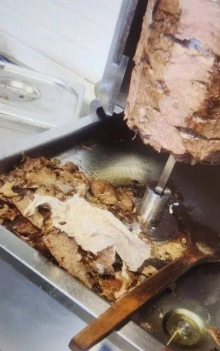 döner firmasından sipariş edip satışa sunduğu baton döner kesildiğinde içinden