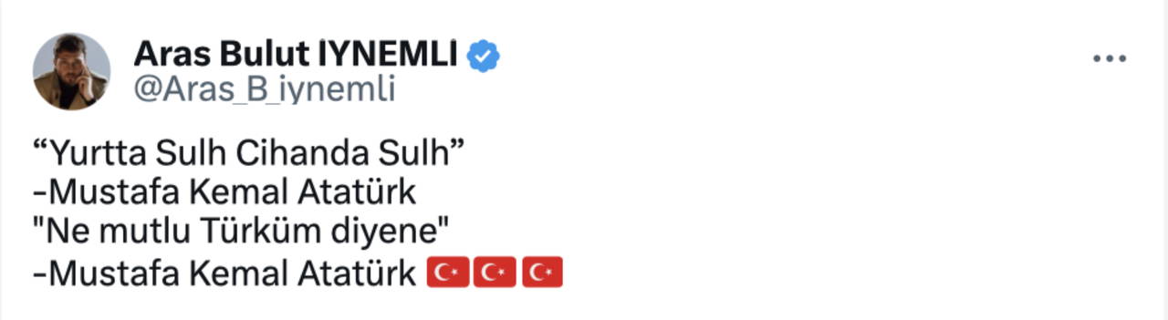 Ünlü oyuncu Aras Bulut İynemli, "“Yurtta Sulh Cihanda Sulh” -Mustafa Kemal Atatürk